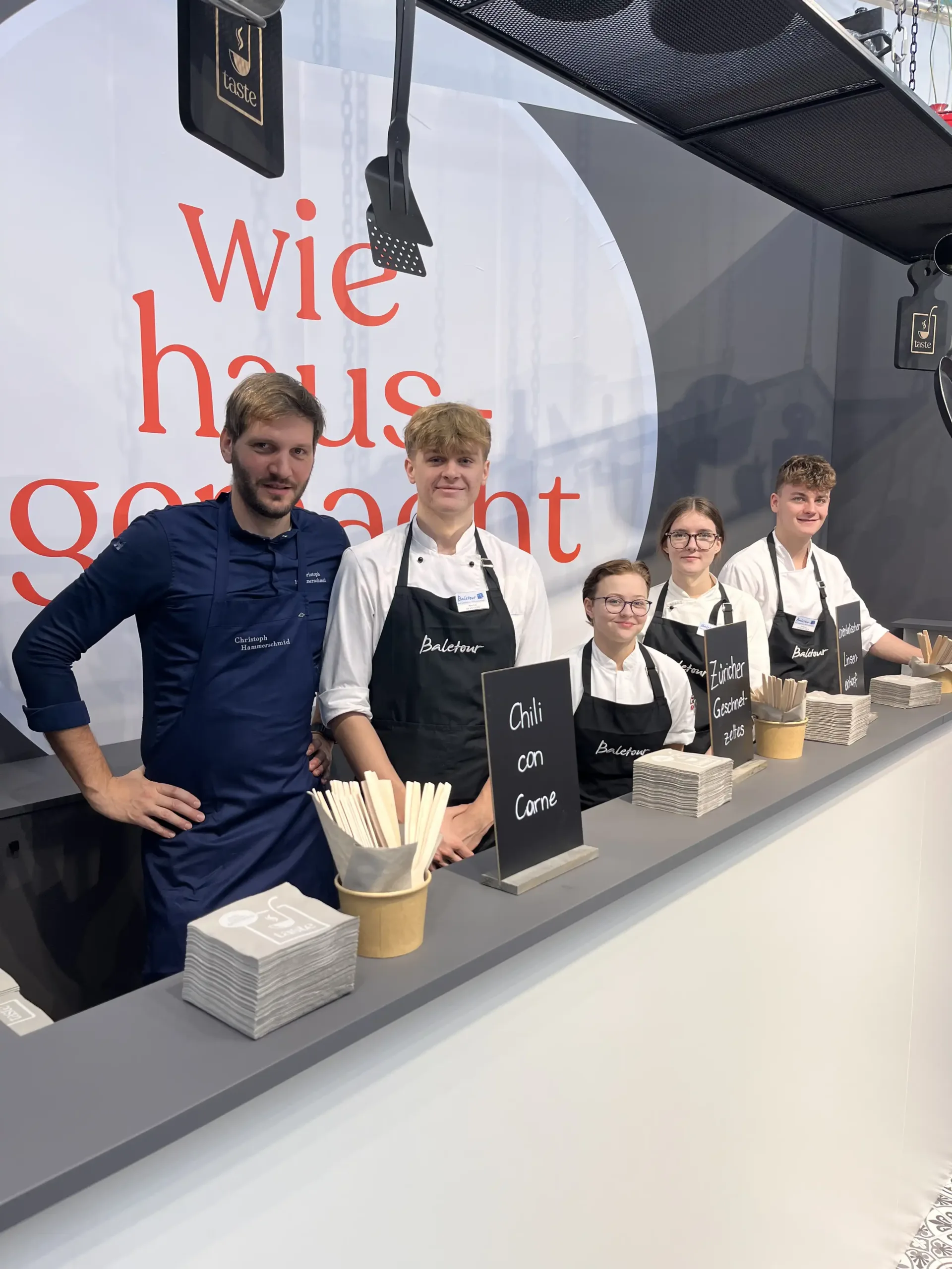 „Alles für den Gast“ – so lautet das Motto der Fachmesse GAST in Salzburg, einer der wichtigsten Branchenmessen für Hotellerie und Gastronomie. Von 8. bis 11. November durften heuer 18 Schülerinnen und Schüler mit Mario Riener und Christoph Hammerschmid als Lehrer den Messestand des Frischelieferanten Kröswang tatkräftig unterstützen.