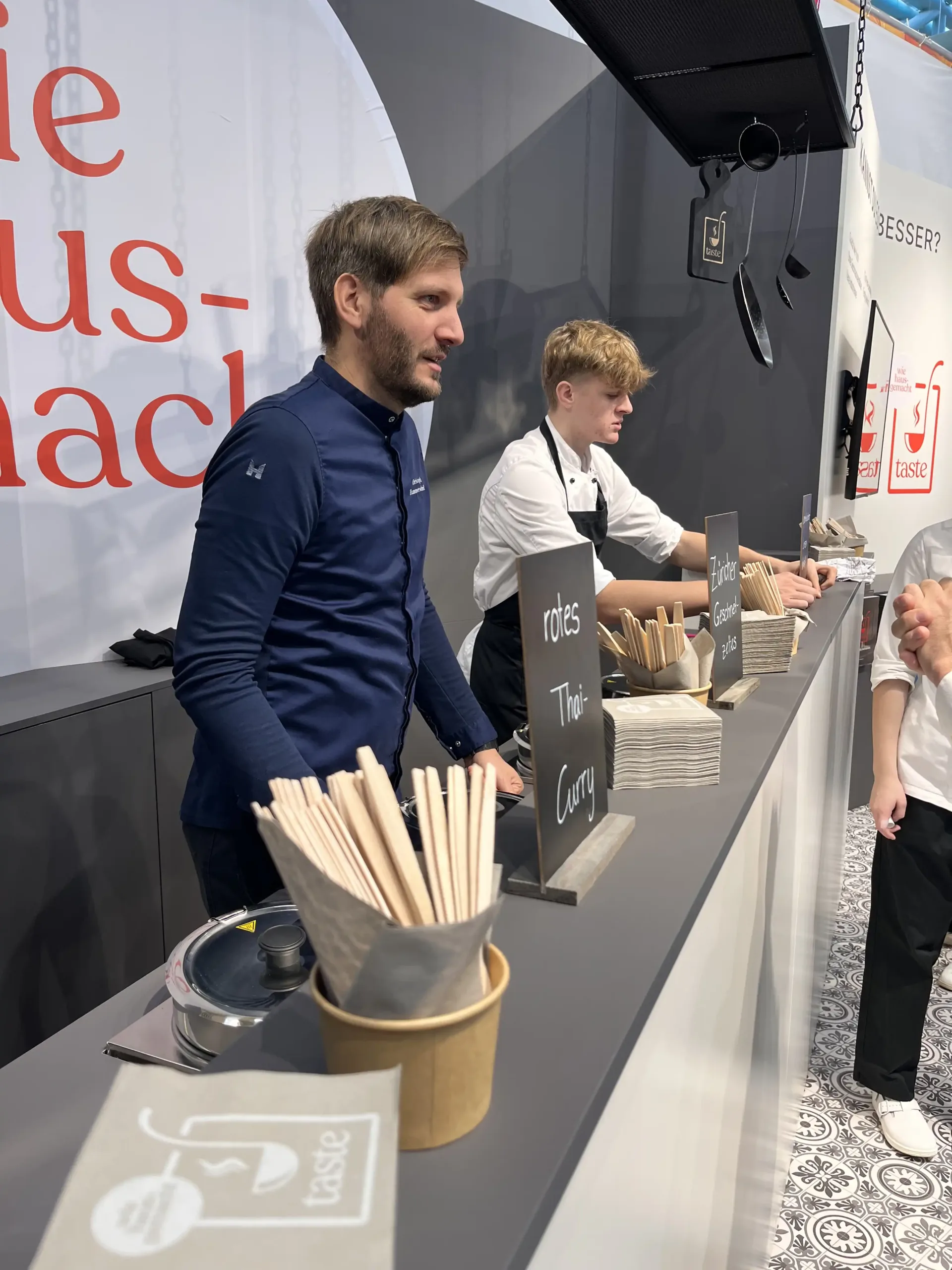 Der Stand gliederte sich in eine Patisserie mit zahlreichen süßen Köstlichkeiten, ein Bistro mit Vor- und Hauptspeise und Getränken sowie einen kleinen Verkostungsstand. „Wie hausgemacht“, so hieß die Schöpfküche, bei der verschiedenste Arten von Currys angeboten wurden.