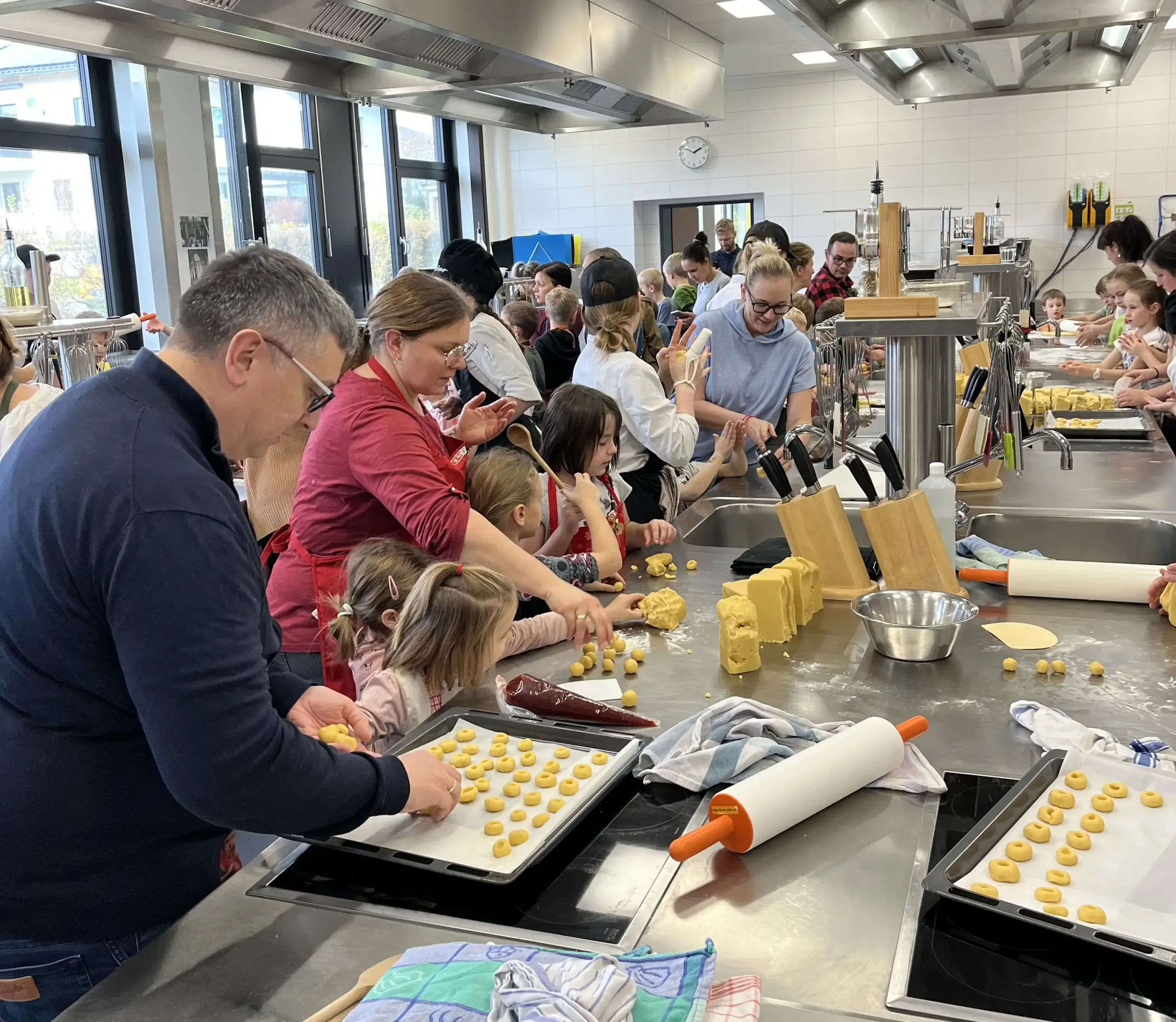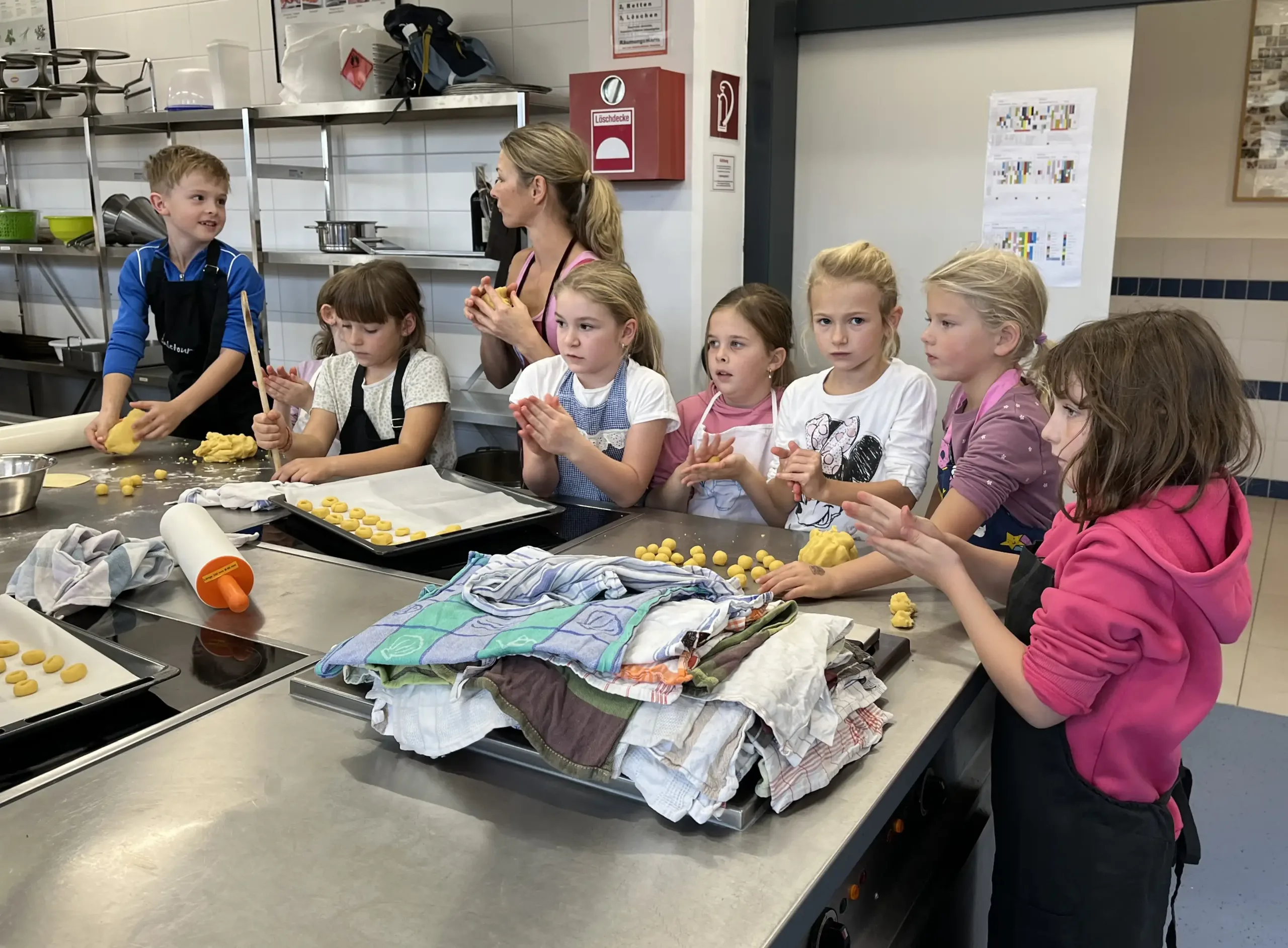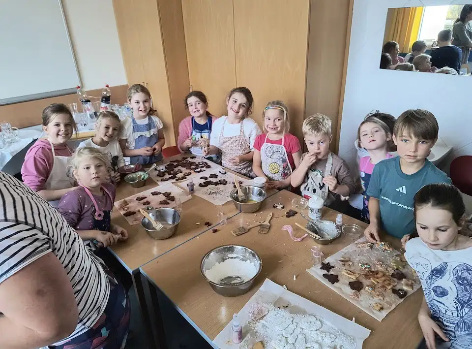 Zum traditionellen Keksebacken versammelten sich heuer ca. 40-50 Schülerinnen und Schüler der 1. und 2. Klassen der Volksschule Bad Leonfelden. Dankenswerterweise durften wir dazu wieder die Küchen der Tourismusschulen Bad Leonfelden nutzen. Ein Team aus einem Kochlehrer und einigen SchülerInnen hat uns bestens betreut und ein Servierlehrer versorgte die durstigen Kids mit bunten Getränken. Die SchülerInnen hatten viel Spaß beim Ausstechen und Verzieren der Weihnachtsbäckerei, und die fleißigen Eltern, die tatkräftig die Teige ausrollten und die Backöfen betreuten, kamen gehörig ins Schwitzen.