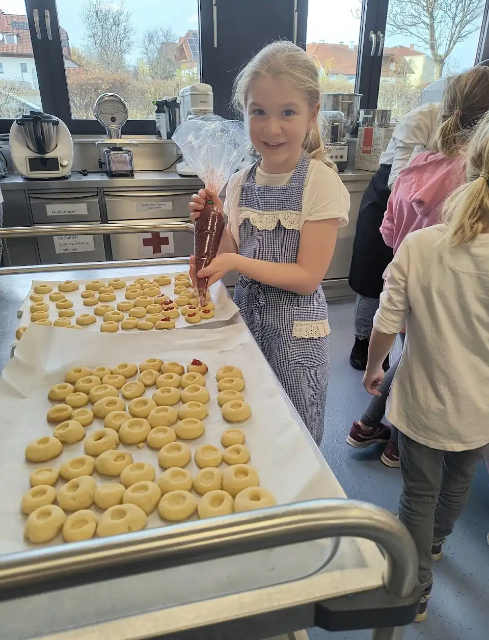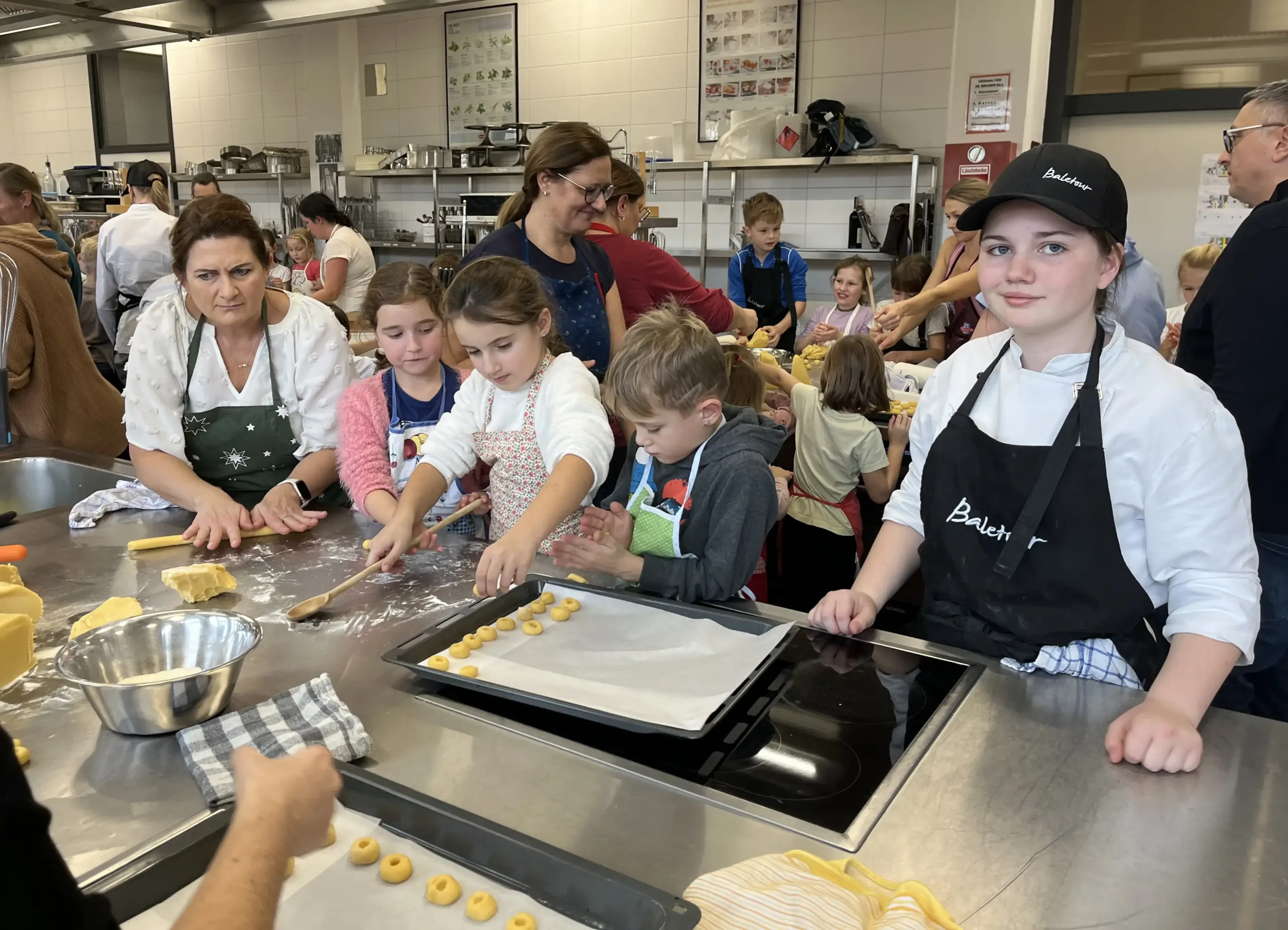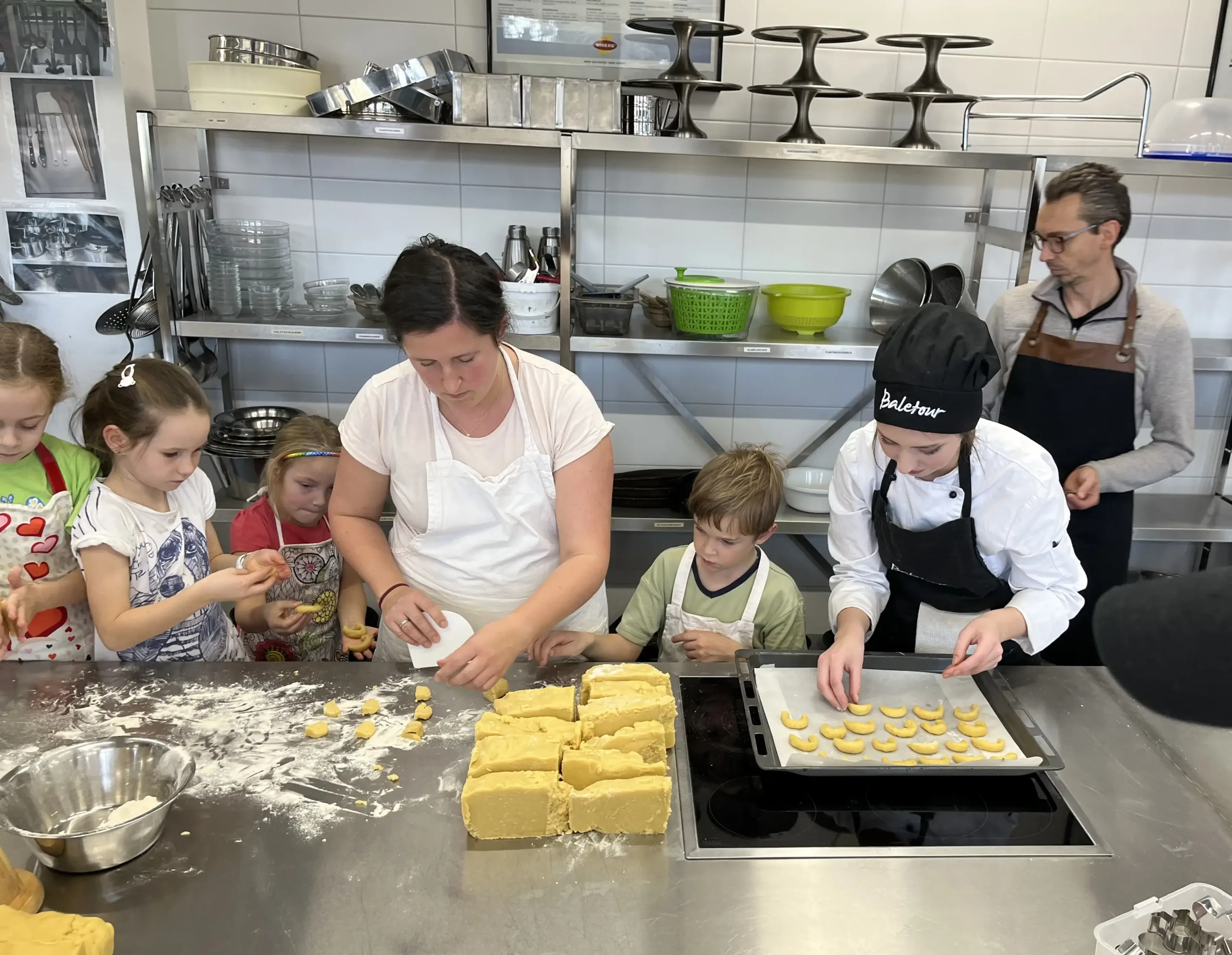 Zum traditionellen Keksebacken versammelten sich heuer ca. 40-50 Schülerinnen und Schüler der 1. und 2. Klassen der Volksschule Bad Leonfelden. Dankenswerterweise durften wir dazu wieder die Küchen der Tourismusschulen Bad Leonfelden nutzen. Ein Team aus einem Kochlehrer und einigen SchülerInnen hat uns bestens betreut und ein Servierlehrer versorgte die durstigen Kids mit bunten Getränken. Die SchülerInnen hatten viel Spaß beim Ausstechen und Verzieren der Weihnachtsbäckerei, und die fleißigen Eltern, die tatkräftig die Teige ausrollten und die Backöfen betreuten, kamen gehörig ins Schwitzen.