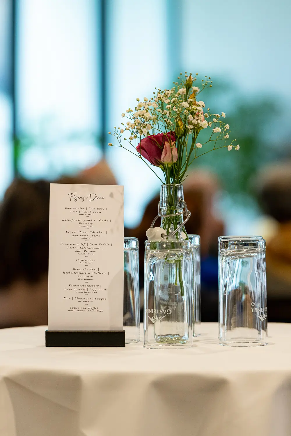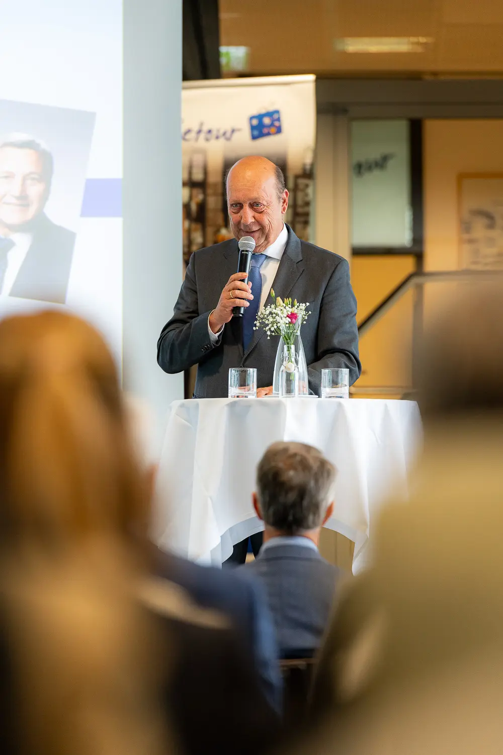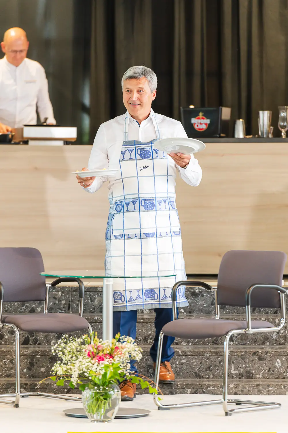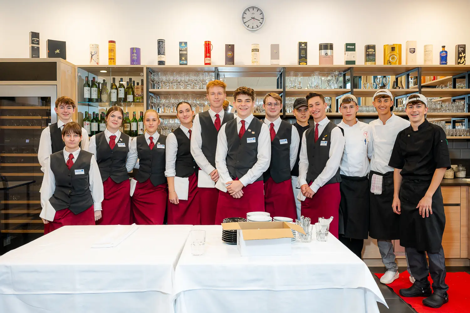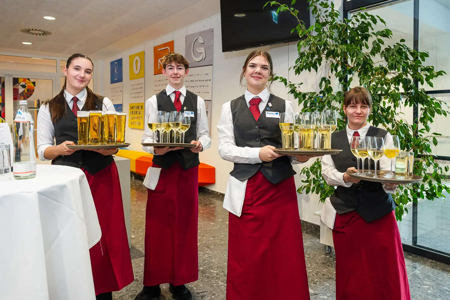 Nach dem abwechslungsreichen Programm wurden die Gäste von Baletour-Schülerinnen und -Schülern sowie den Kochlehrern mit einem Flying Dinner verwöhnt, das Köstlichkeiten wie Lachsforelle mit Brotchip, Kichererbsencurry oder Ochsenbackerl zu bieten hatte. Möge die festliche, heitere Stimmung dieses „ausgedehnten“ Nachmittags Herbert Panholzer noch lange begleiten.