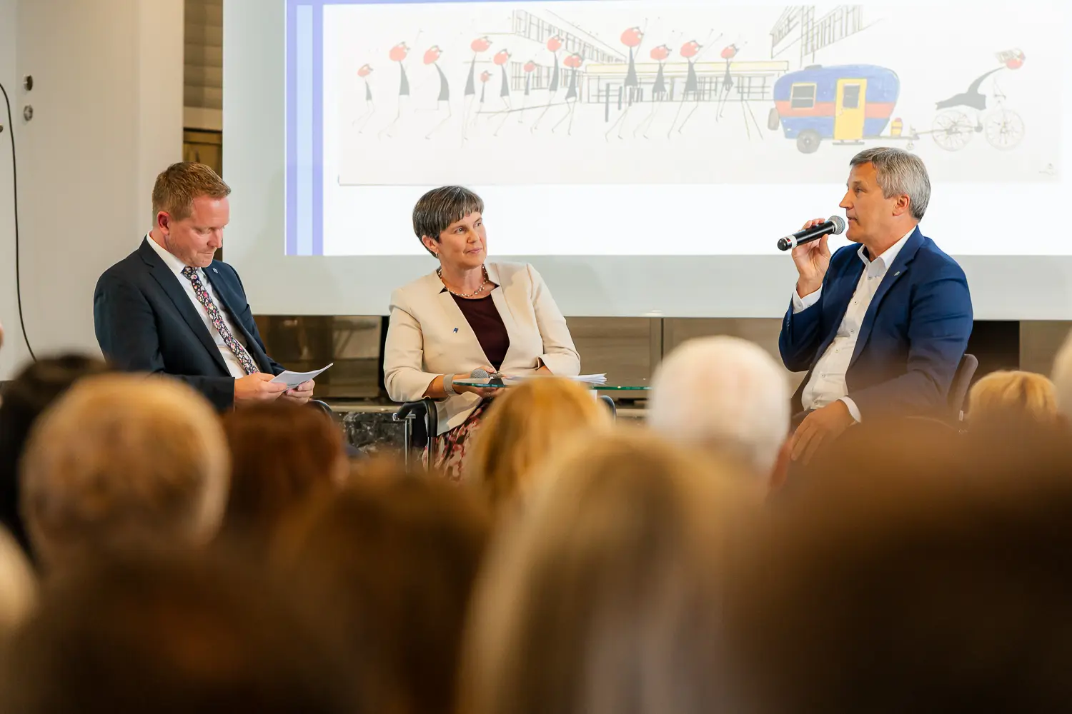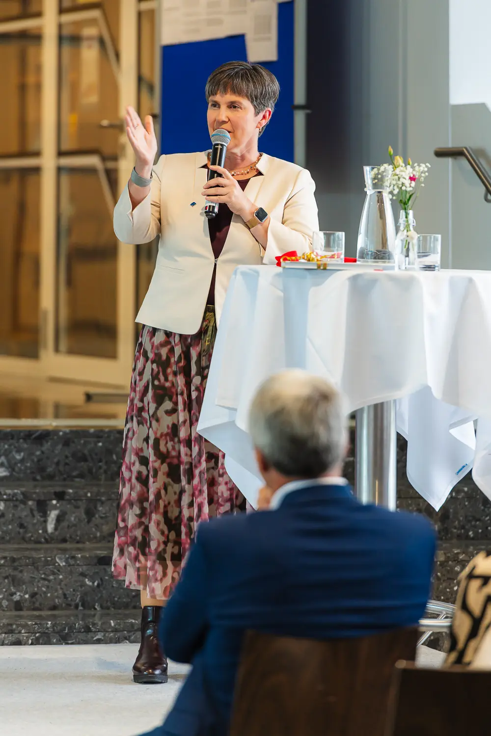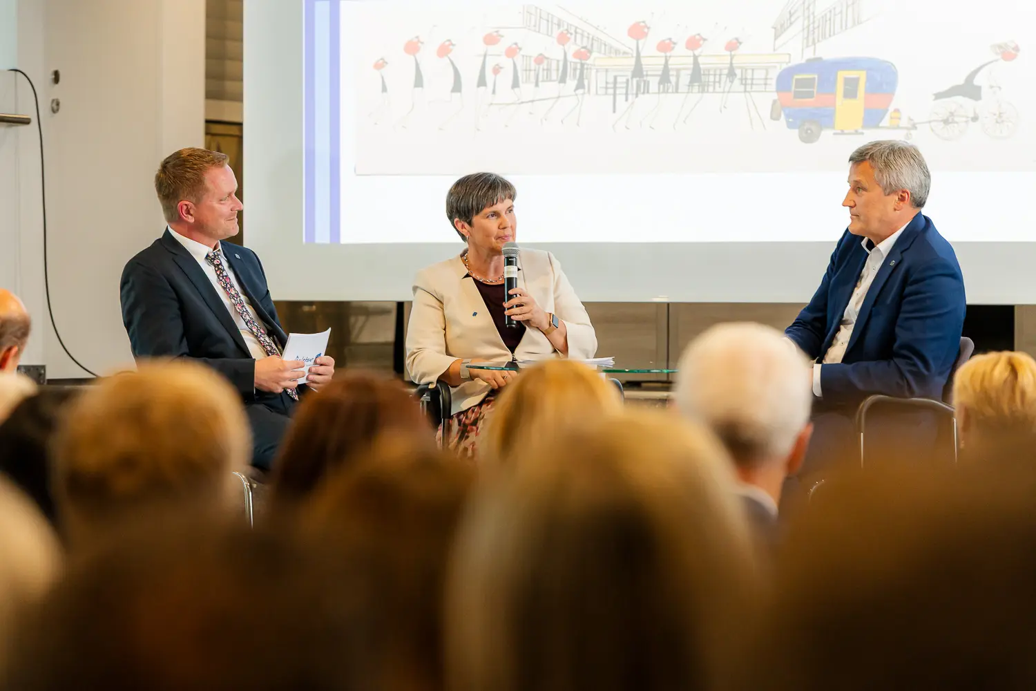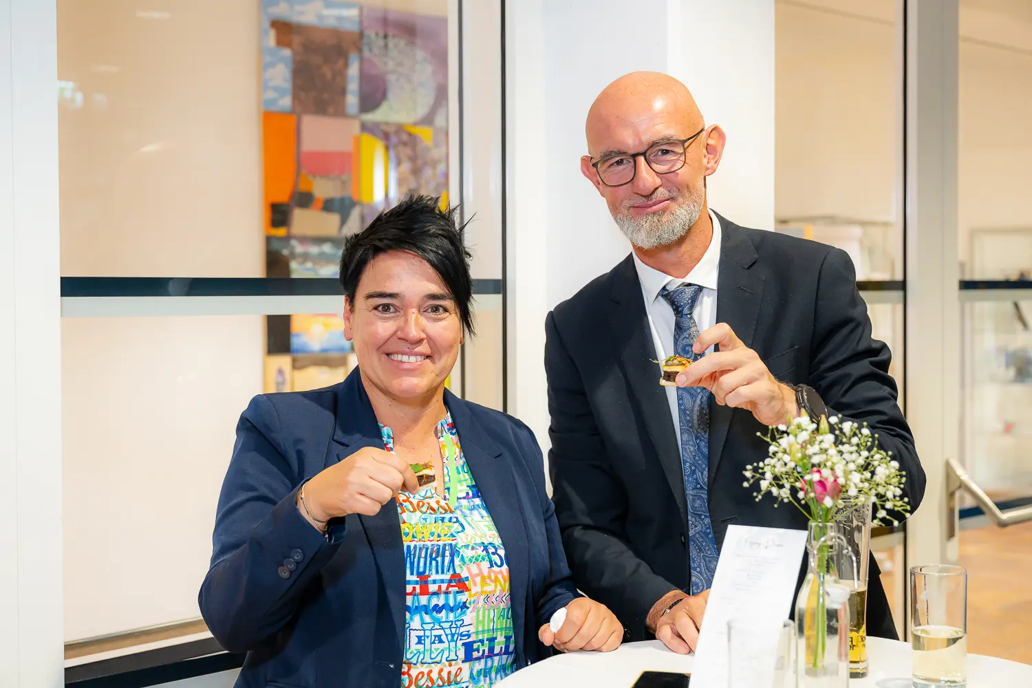 Nach dem abwechslungsreichen Programm wurden die Gäste von Baletour-Schülerinnen und -Schülern sowie den Kochlehrern mit einem Flying Dinner verwöhnt, das Köstlichkeiten wie Lachsforelle mit Brotchip, Kichererbsencurry oder Ochsenbackerl zu bieten hatte. Möge die festliche, heitere Stimmung dieses „ausgedehnten“ Nachmittags Herbert Panholzer noch lange begleiten.