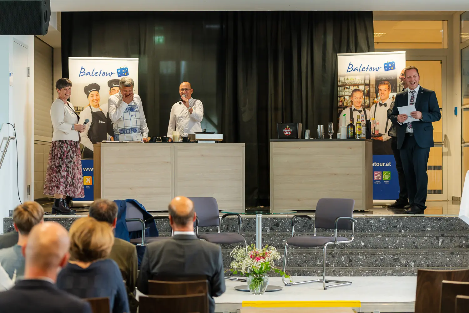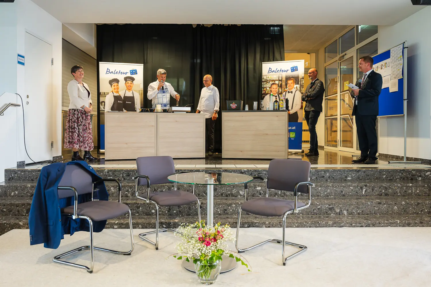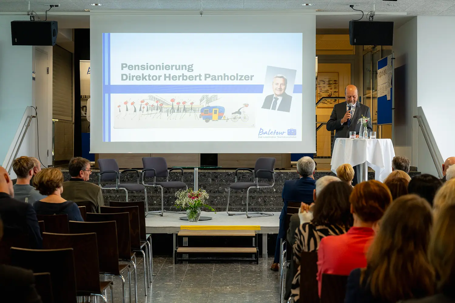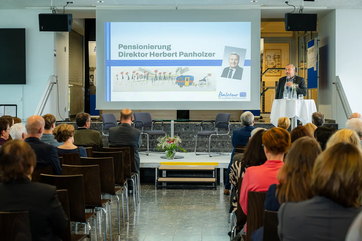 Nachdem Direktor Herbert Panholzer nach langjähriger Tätigkeit für die Baletour seinen wohlverdienten Ruhestand angetreten hat, feierte er am 30. September in der festlich geschmückten Aula seinen Abschied vom Schuldienst. Wie man Unterhaltung und Kulinarik gelungen verknüpft, wurde dabei wieder einmal eindrücklich erlebbar.