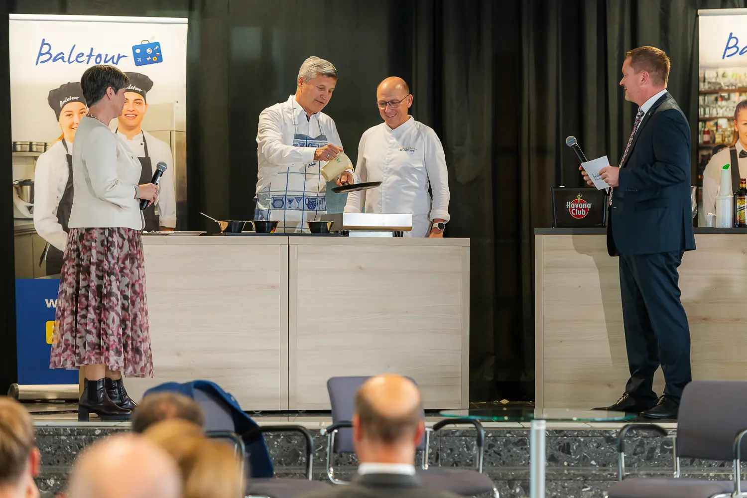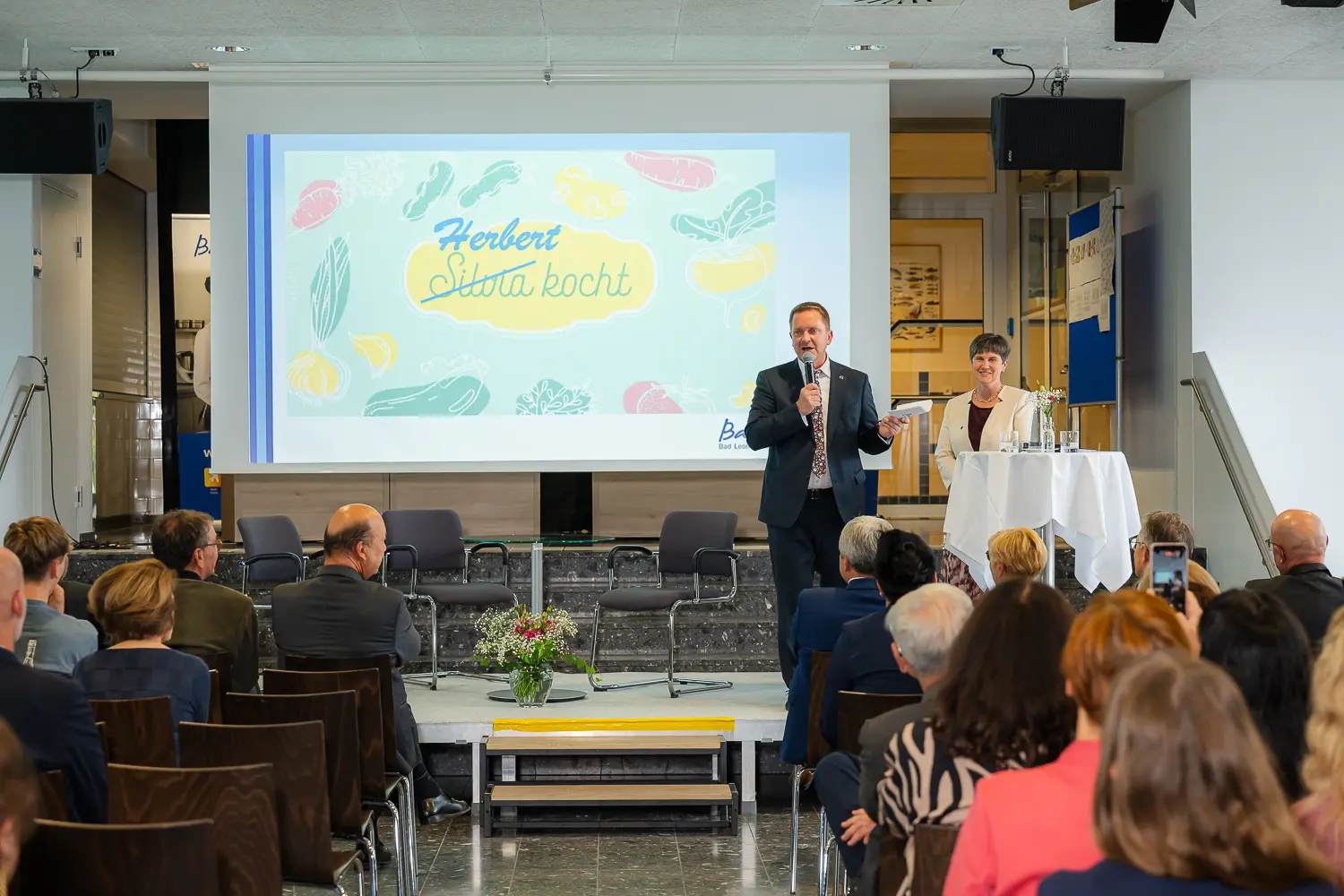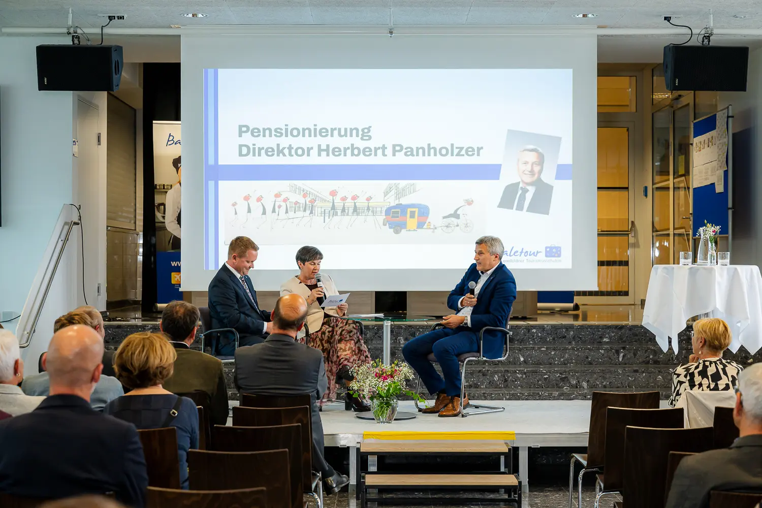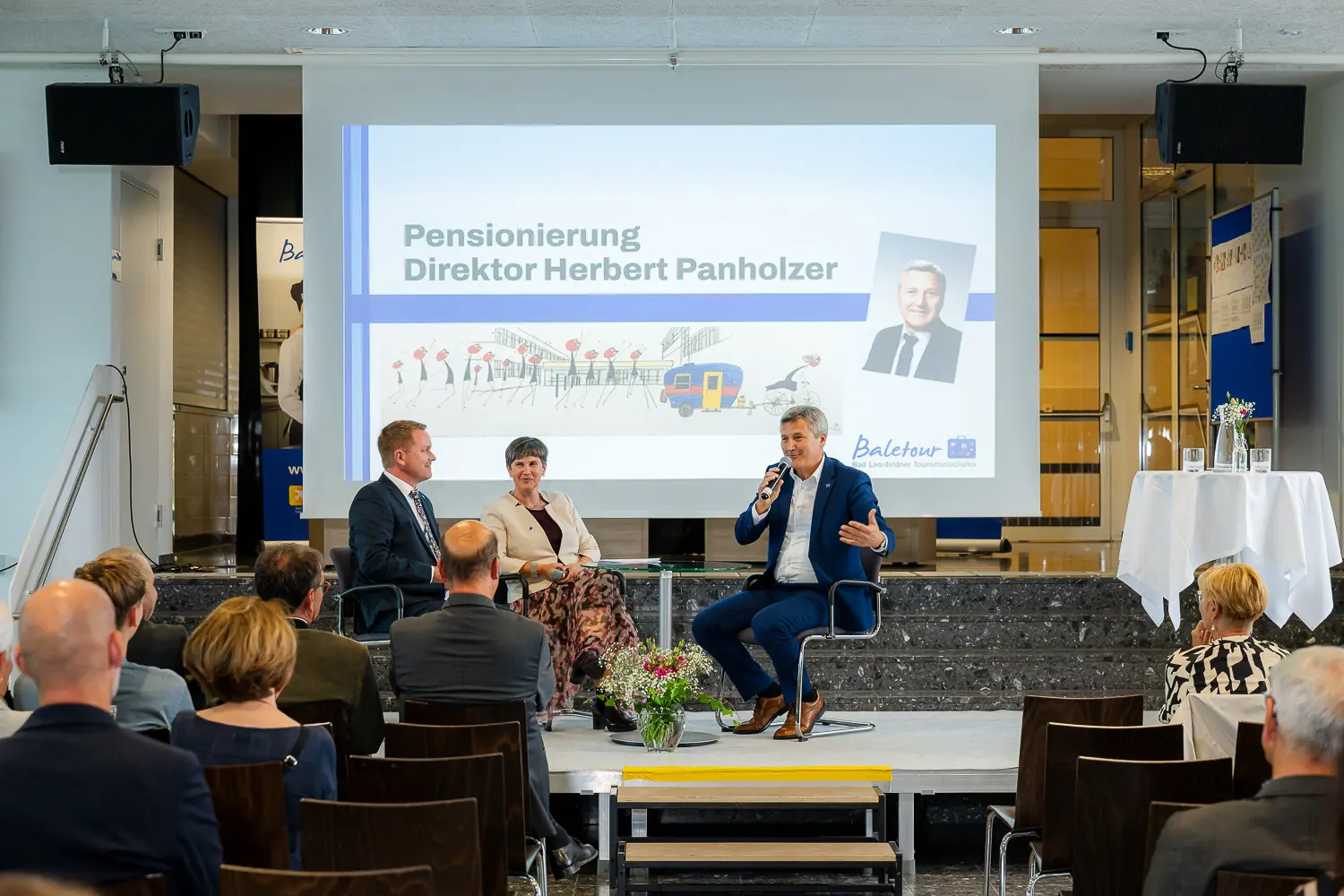 Nachdem Direktor Herbert Panholzer nach langjähriger Tätigkeit für die Baletour seinen wohlverdienten Ruhestand angetreten hat, feierte er am 30. September in der festlich geschmückten Aula seinen Abschied vom Schuldienst. Wie man Unterhaltung und Kulinarik gelungen verknüpft, wurde dabei wieder einmal eindrücklich erlebbar.