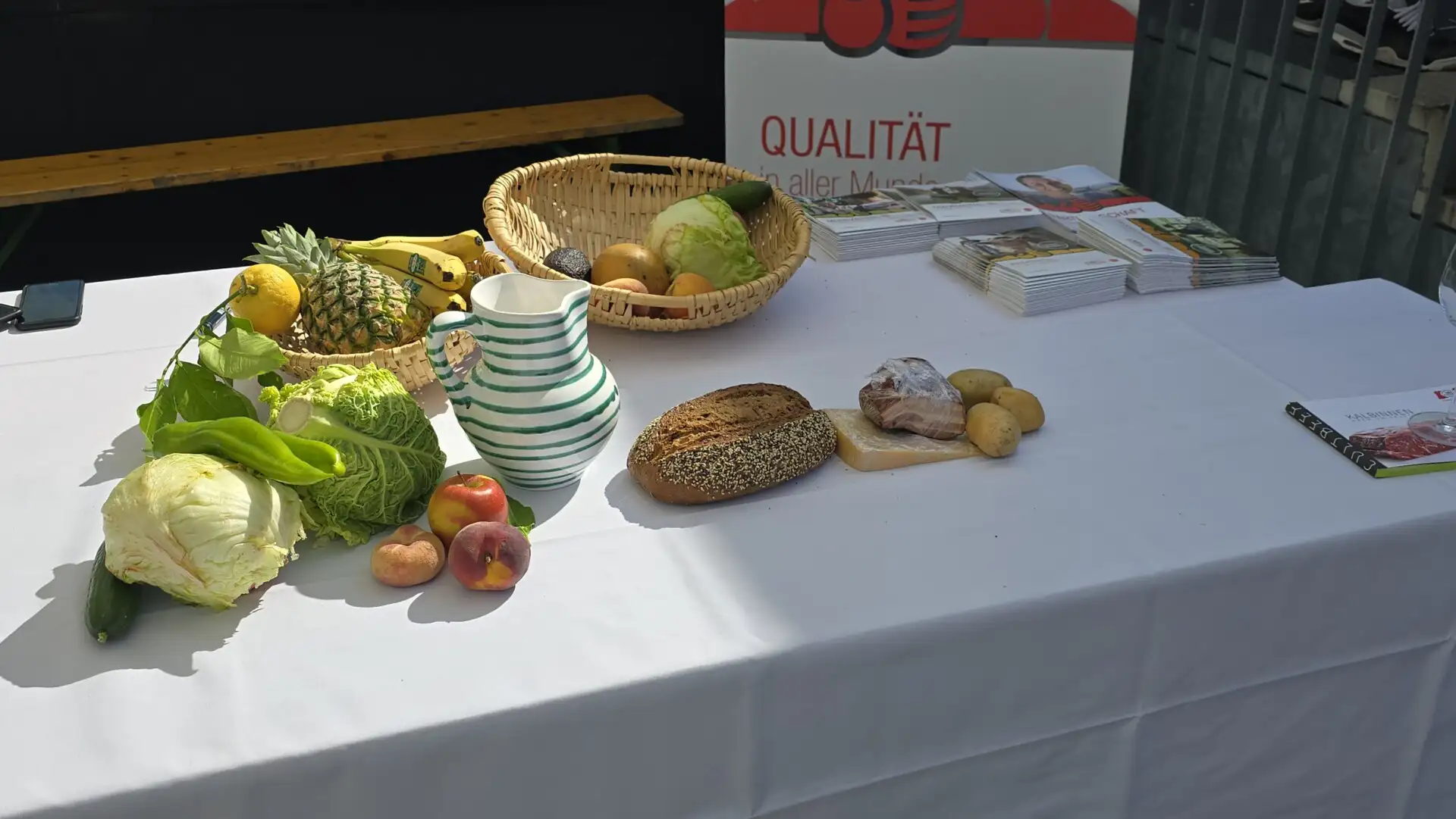 Wie bei einer Messe gingen die Schülergruppen von Stand zu Stand, wo die Produzentinnen und Produzenten Wissenswertes über ihre Betriebe erzählten. Auch mit Kostproben ihrer Produkte waren die Hersteller alles andere als sparsam, und so konnte vom Leinsamenöl übers Dinkelbrot bis zur Fleisch-Spezialität von der Kälbin allerhand probiert werden.