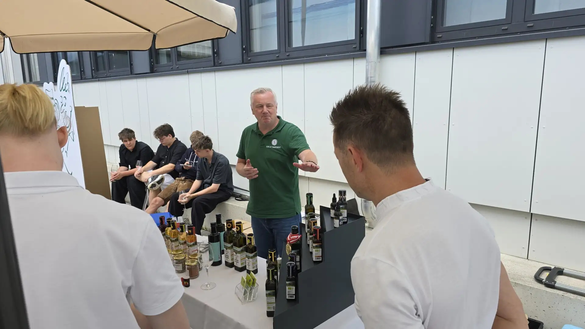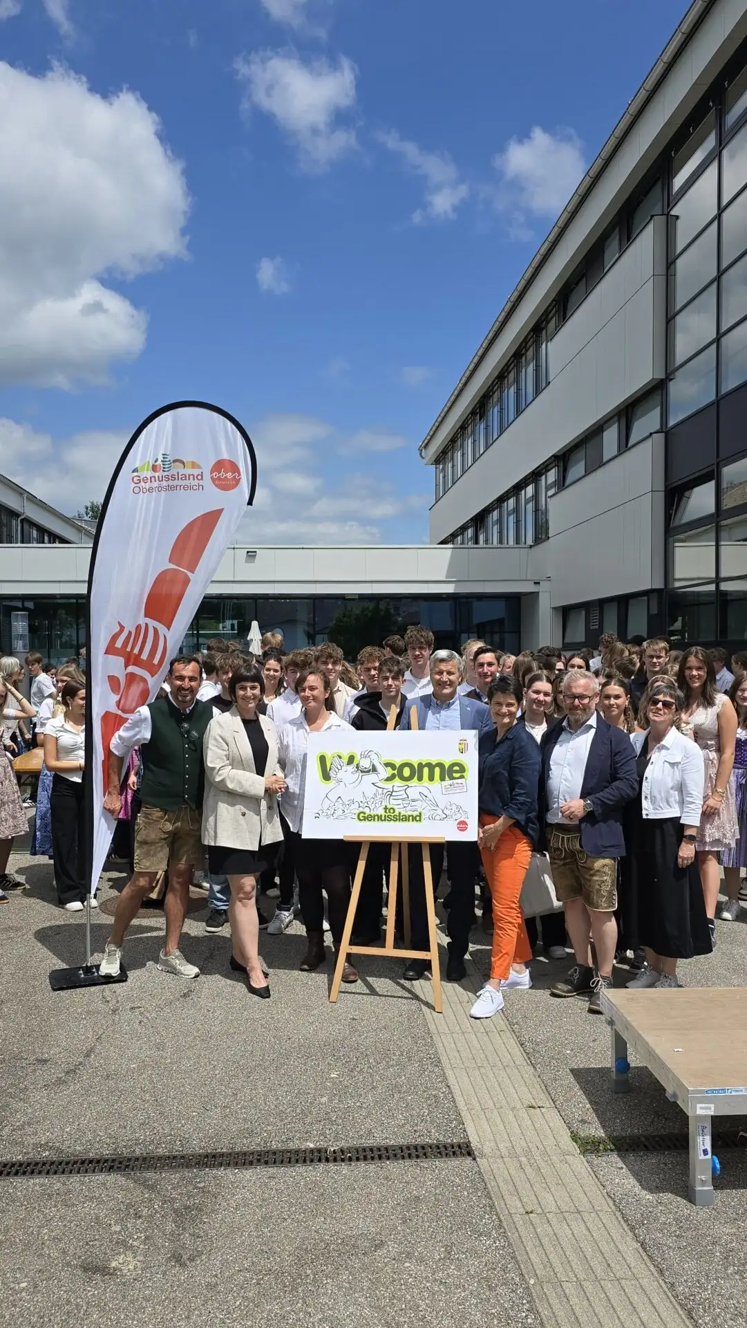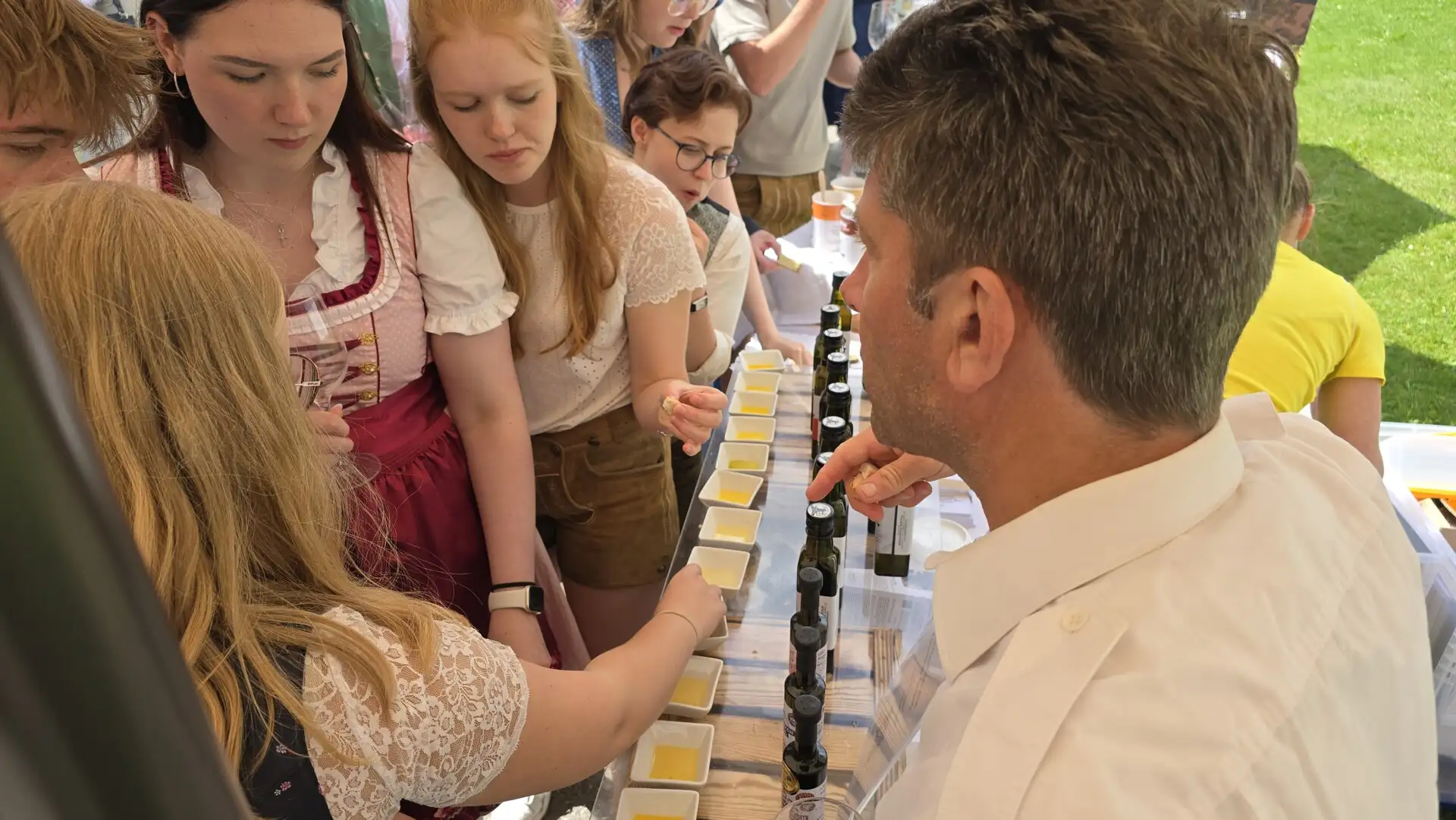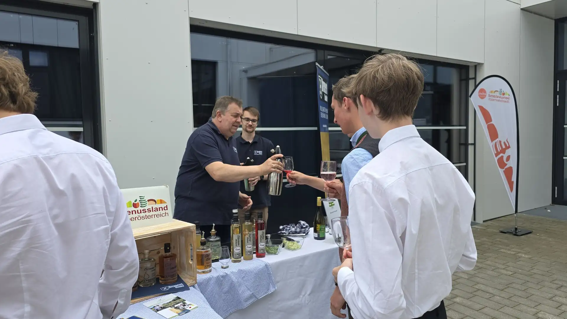 Aus welchen Kernen kann man Öl pressen? Wie wird eigentlich alkoholfreies Bier hergestellt? Und warum ist Wildfleisch so gesund? Auf solche und viele ähnliche Fragen erhielten die Schülerinnen und Schüler der Baletour am 17. Juni Auskunft aus erster Hand. Der sogenannte „Genusstag“, veranstaltet gemeinsam mit der Initiative „Genussland Oberösterreich“, versammelte 16 regionale Hersteller in der Aula und am Schulvorplatz.