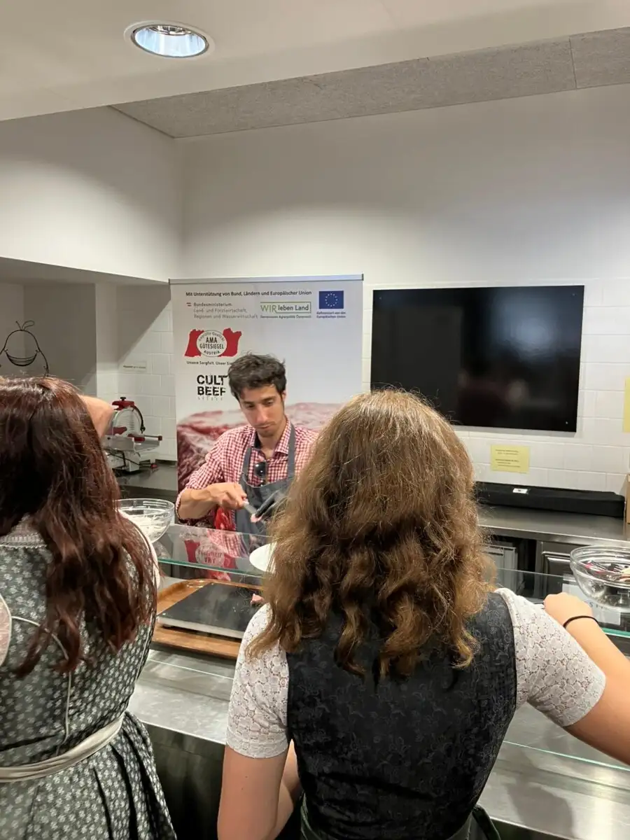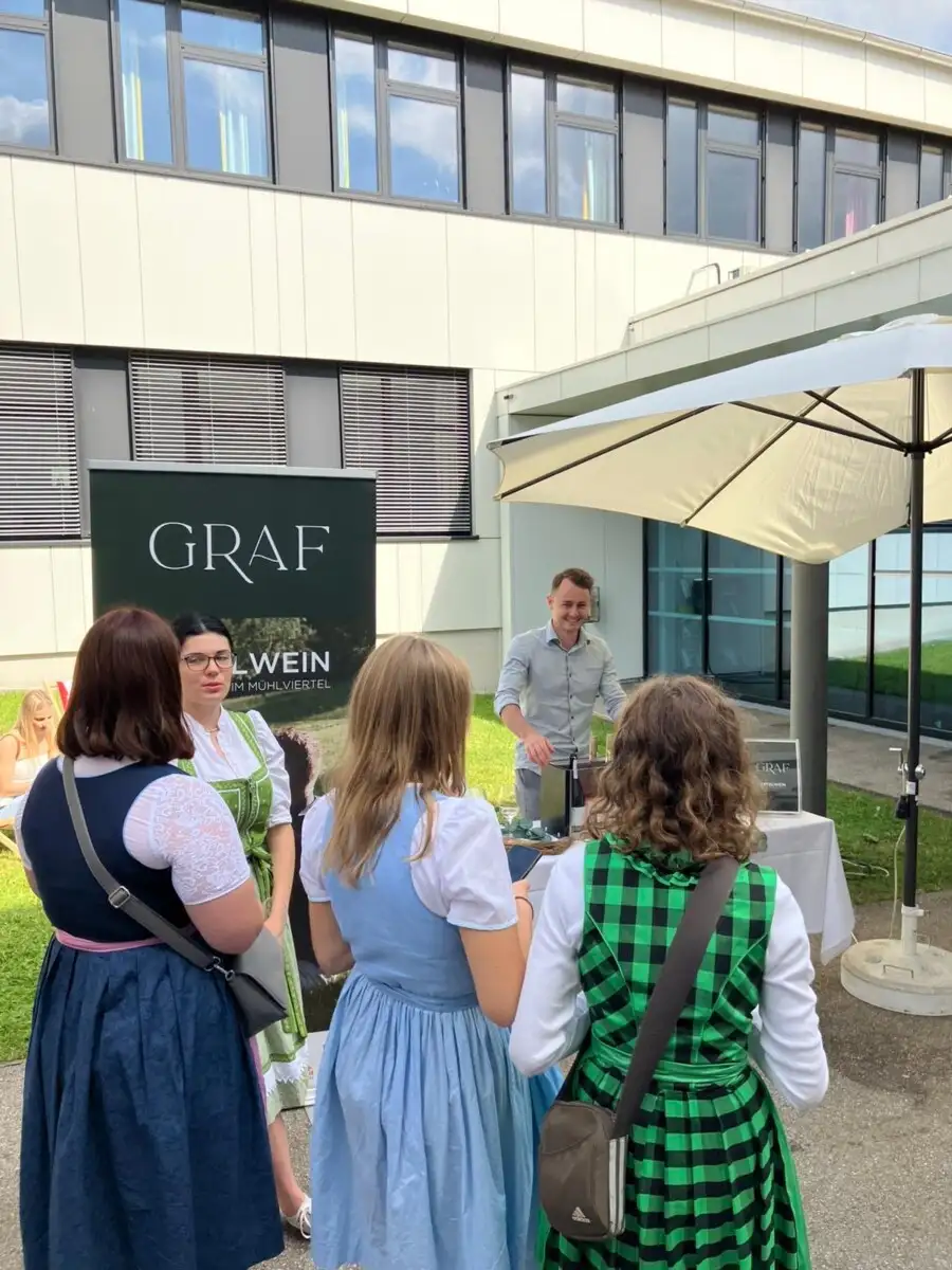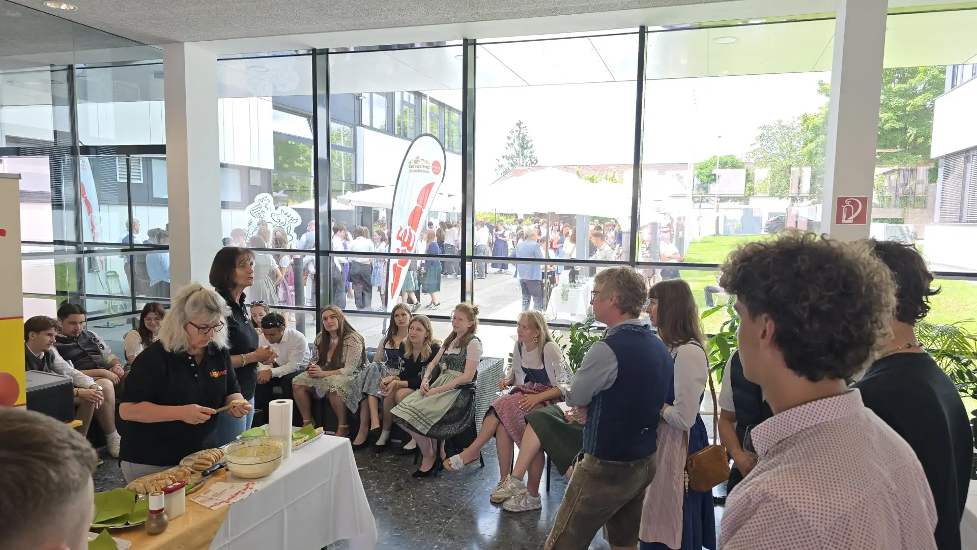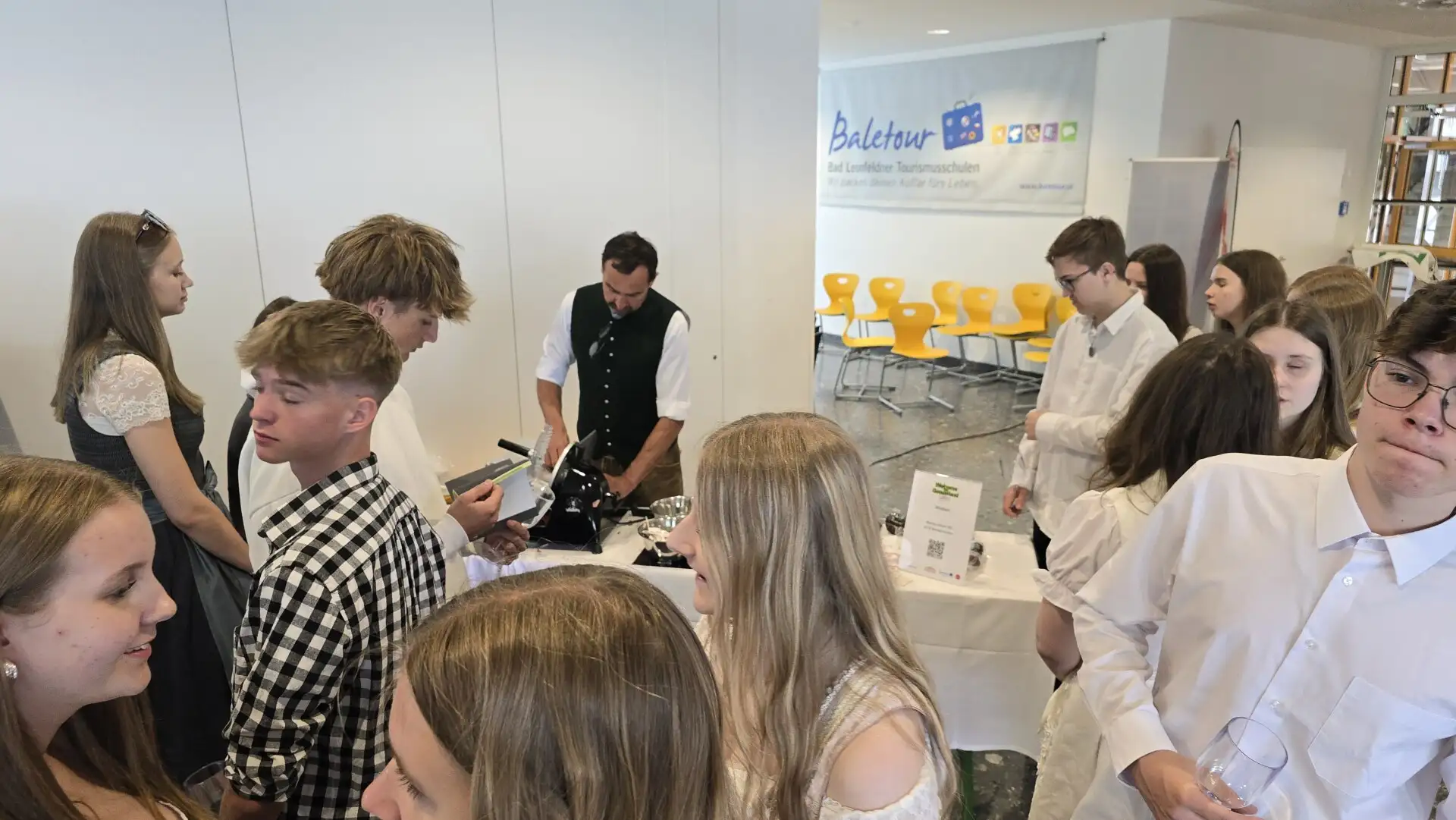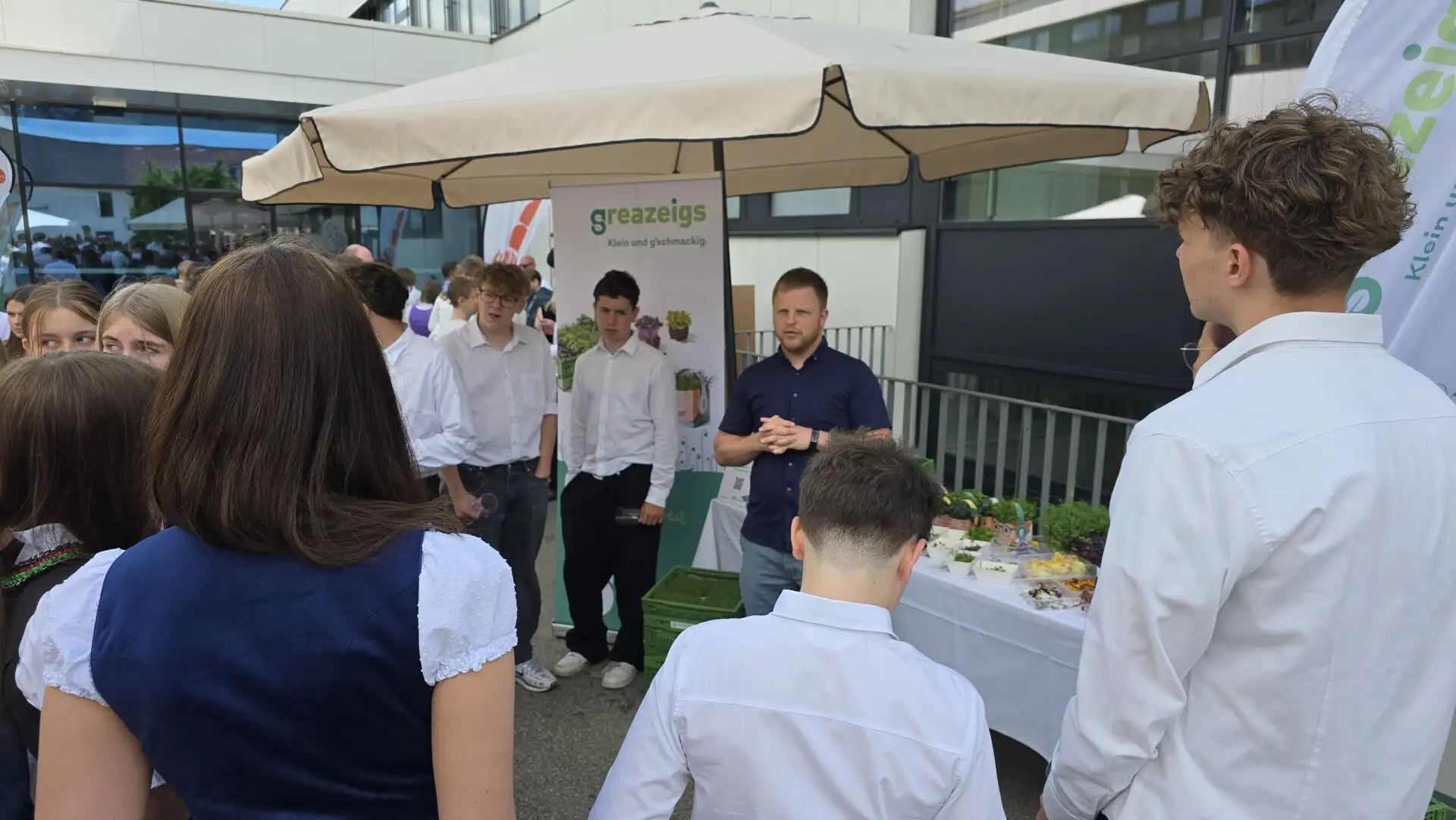 Aus welchen Kernen kann man Öl pressen? Wie wird eigentlich alkoholfreies Bier hergestellt? Und warum ist Wildfleisch so gesund? Auf solche und viele ähnliche Fragen erhielten die Schülerinnen und Schüler der Baletour am 17. Juni Auskunft aus erster Hand. Der sogenannte „Genusstag“, veranstaltet gemeinsam mit der Initiative „Genussland Oberösterreich“, versammelte 16 regionale Hersteller in der Aula und am Schulvorplatz.