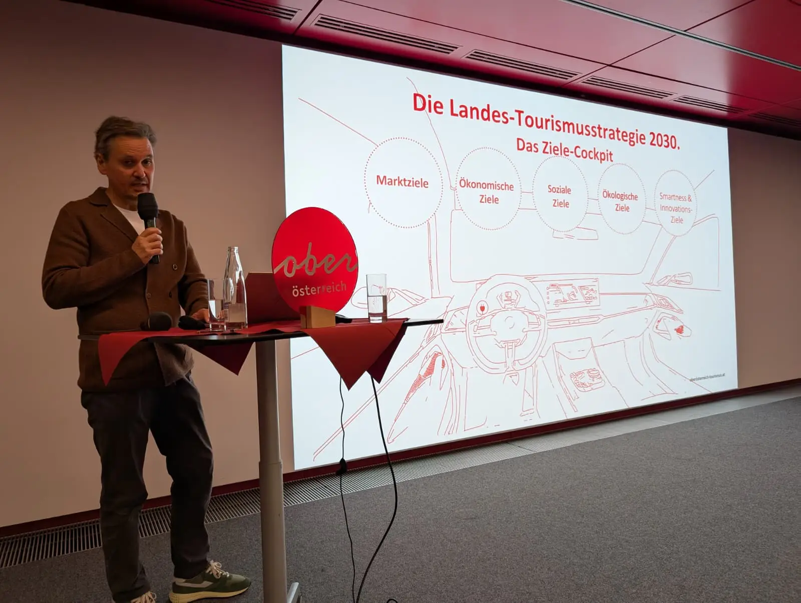 Unter dem Motto „Tourismusland OÖ – am Puls der Zeit“ fand am 16. Oktober erstmalig ein Tourismustag für Schülerinnen und Schüler in Linz statt. Diesen durften die Maturaklassen der Baletour im Rahmen eines spannenden Exkursionstages besuchen. Mag. Andreas Winkelhofer, Geschäftsführer von OÖ Tourismus, referierte nach der Begrüßung über das Tourismusland Oberösterreich sowie aktuelle Themen und Strategien. Johannes Auer, ebenfalls von OÖ Tourismus, entführte die Zuhörerinnen und Zuhörer in die innovative digitale Welt des Tourismus. Als weiteren Programmpunkt lud Baletour-Absolvent Stefan Fattinger, BA, zu einem interessanten Blick hinter die Kulissen der modernen Tourist Info Linz. Anschließend wurde das AEC, Museum der Zukunft, von Baletour-Absolvent Mag. Andreas Bauer vorgestellt, bevor die Klassen mit dem Deep Space einen der interessantesten digitalen Erlebnisräume der Welt kennenlernten. Es war für alle Beteiligten ein äußerst informativer und abwechslungsreicher Tag in Linz.