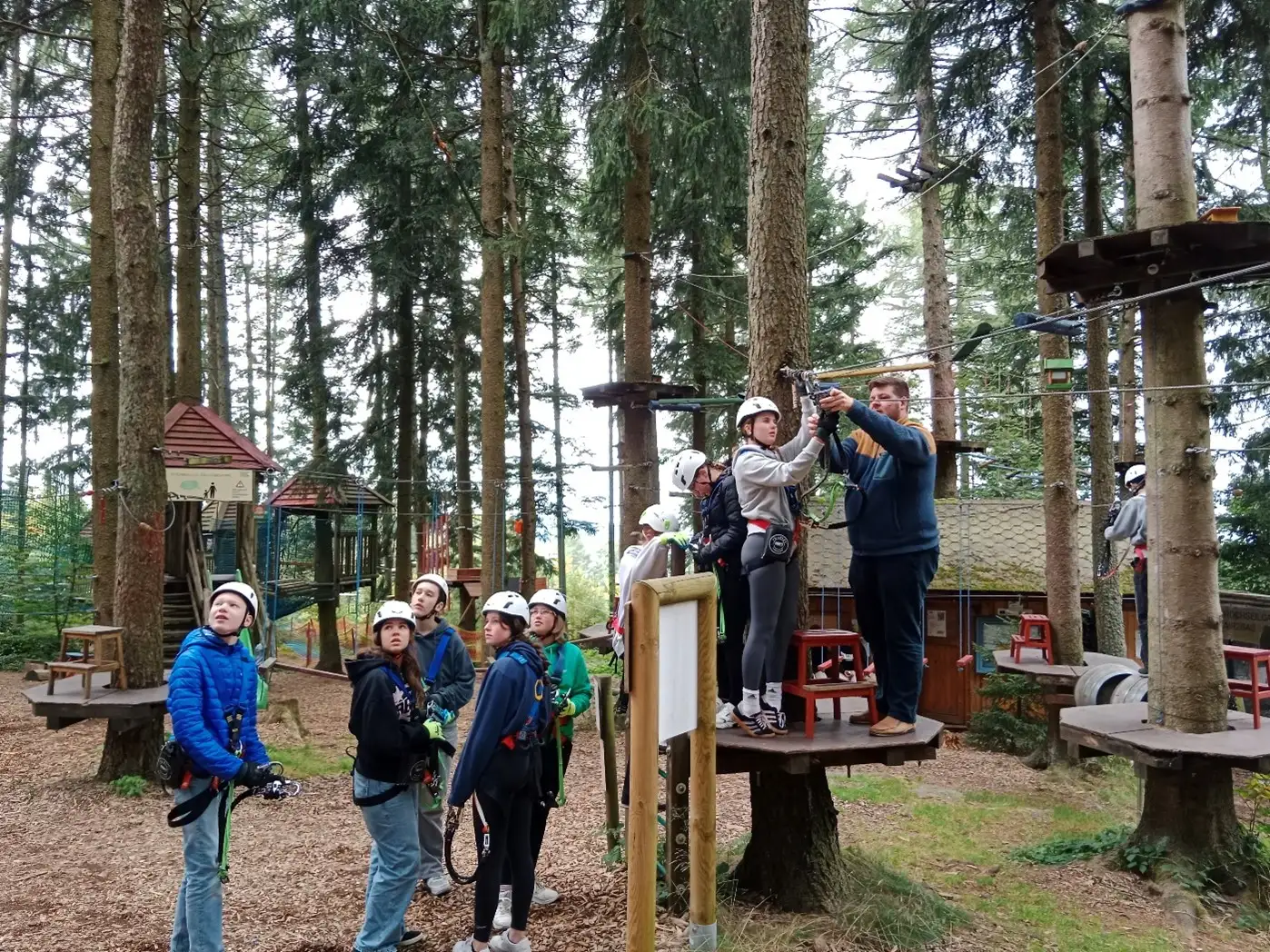Am ersten Tag besuchten wir die „Teigbude“ der Mühlviertler Landbäckerei. Dort durften wir unsere eigenen Gebäckstücke formen und erfuhren auch sehr viel über das Unternehmen. Anschließend pflückten wir das Obst im Schulgarten, bevor wir am Nachmittag eine Rundtour durch das Hotel Falkensteiner in Bad Leonfelden unternahmen. Der zweite Tag führte uns in den Hochseilgarten in Kirchschlag, wo wir unsere Teamfähigkeit üben und einander noch besser kennenlernen konnten.